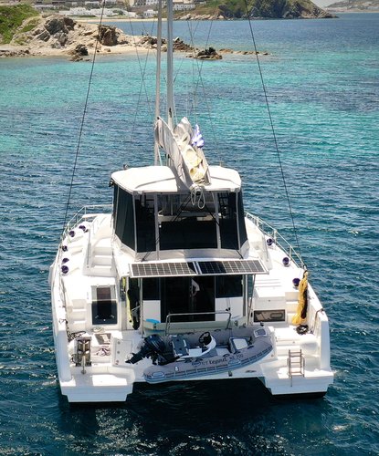 Get on the water and enjoy Tourlos in style on our Lagoon Lagoon 450 Fly