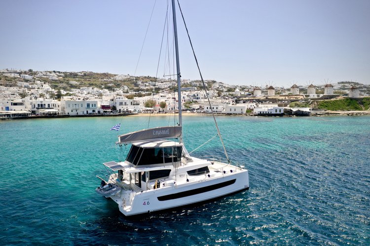 Get on the water and enjoy Tourlos in style on our Lagoon Lagoon 450 Fly