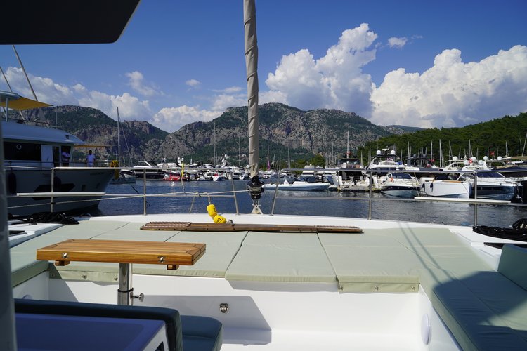Take this stunning sailboat 46.8’ Catana Group boat rental in Aegean, Turkey for a ride and enjoy sailing one of the best models made by this famous boat builder. You'll find this Bali 4.6 - 5 + 1 cab. Catamaran from 2025 a real pleasure to navigate; she accommodates up to 10 guests and has all the onboard facilities to make your nautical adventure one you'll never forget.