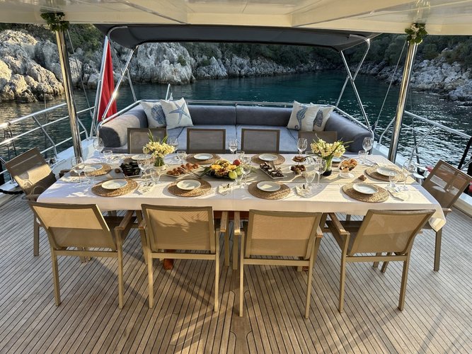 One of the sought-after yachting destinations, Turkey welcomes every year sailors from around the world. The boat calendar below includes detailed information on discounts available for this boat rental and shows you the annual price trend. We hope that this unique Sailo feature will help you make the decision in choosing this yacht charter from Aegean for your next vacation. Do you need more details about this yacht charter before you make the booking? Send a message directly to the boat owner by clicking on the blue button 'Message Owner'.