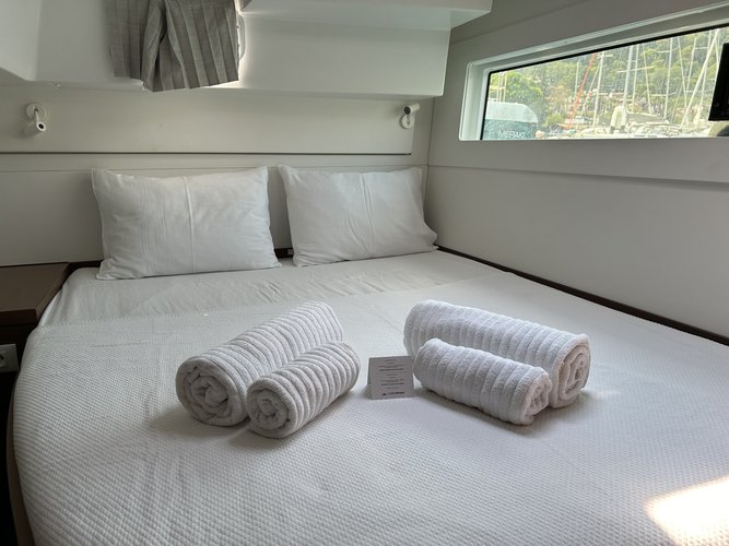 The guests on this sailboat will be sharing 5 cabins with 9 sleeps and 4 bathrooms. You can customize your sailing trip by further choosing from 46 extra services available for this sail yacht charter. The displayed boat rental price already includes the mandatory extras payable now. Check and choose from the optional extras on the next page by clicking the reservation button.