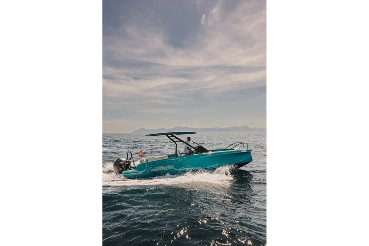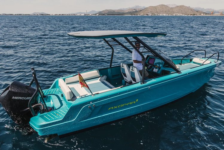The Axopar x Jobe Revolve XXII T-Top is a 23ft (7.2m) motorboat designed for day charters and water sports activities in Mallorca. The vessel is based on the Axopar 22 platform and accommodates up to 7 guests, making it suitable for small groups and coastal cruising.