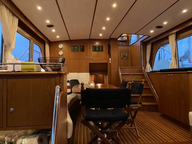 A 17-meter luxury (custom build) motor yacht with 3 bedrooms and 2 bathrooms, offering a very spacious and comfortable overnight stay for groups of up to 6 guests.