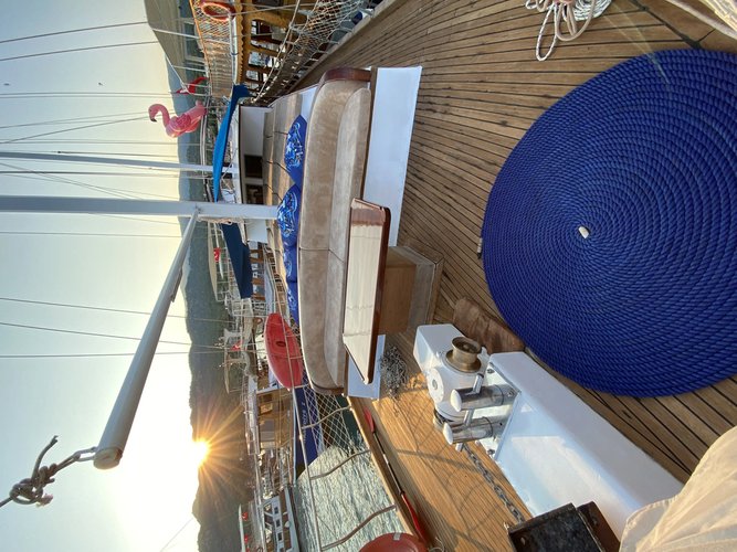 Our gulet offers snorkeling equipment, sunbathing cushions, and many other activity opportunities. Enjoy swimming and snorkeling in the crystal-clear waters of Kaş, and relax under the sun to unwind from the day's fatigue. Our gulet is not just a place to stay, but also a fun and activity-filled experience. A journey awaits you in the endless blues of the Mediterranean, where you'll create unforgettable memories. Experience the ultimate Mediterranean escape!