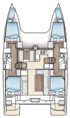 This boat has a maximum capacity of 11 people. For guests it features 4 cabins with an overnight sleeping capacity of 9 (1 of which is in the common area), 2 bathrooms and 2 showers. Additionally, for captains and crew it features 2 cabins with an overnight sleeping capacity of 2, 0 bathrooms, and 0 showers.