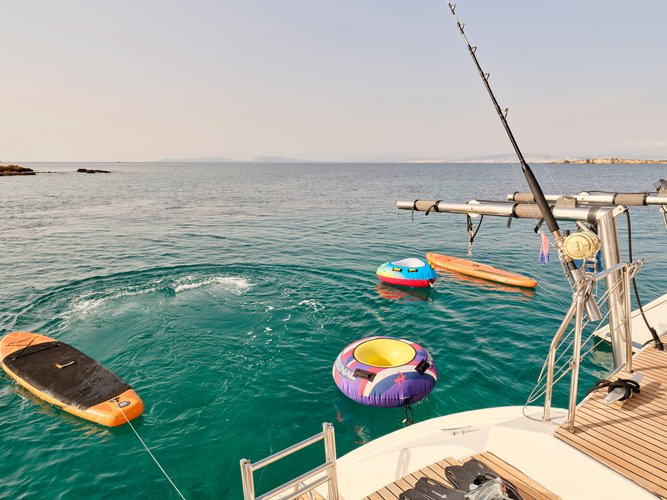 Get behind the helm of this gorgeous Athens sailboat rental, a Lagoon 50 from 2020, ideal for a group of friends or family vacation in Greece. The Catamaran charter has a max capacity of 14 guests, which makes it perfect for week-long, relaxed trips with your family or a group of friends.