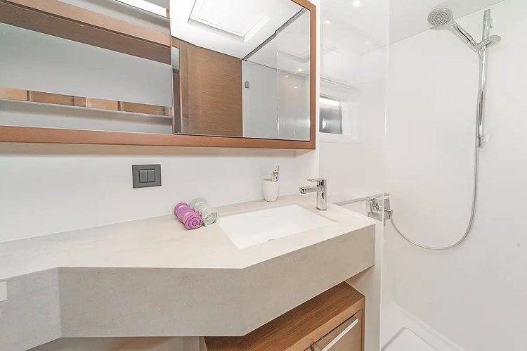 This is a 45.9 feet long sailboat rental that provides the guests with 6 cabins with 12 sleeps and 5 bathrooms. There are 14 extra services available for you to customize your trip on this sailboat charter. The mandatory extras payable now are already included in the rental price. By clicking the reservation button, you will be able to choose from the optional extras to further customize your sailing vacation.