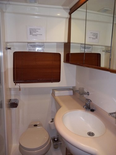 This motor boat has 3 cabins with 6 sleeps and 2 bathrooms.