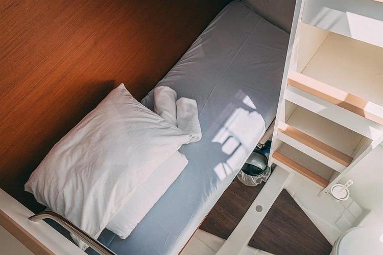 This boat has a maximum capacity of 10 people. For guests it features 5 cabins with an overnight sleeping capacity of 10, 4 bathrooms and 0 showers. Additionally, for captains and crew it features 1 cabin with an overnight sleeping capacity of 1, 0 bathrooms, and 0 showers.