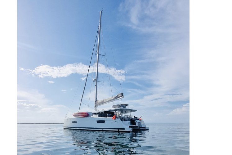 With powerful performance, minimalist elegance, and striking modern design, Saona 47 is one of the most sought-after Fountaine Pajot Saona 47s on the water. Her expansive open-plan layout seamlessly blends indoor, outdoor, and galley spaces, creating a spacious, breezy environment perfect for dining, lounging, and taking in Belize’s world-class views.