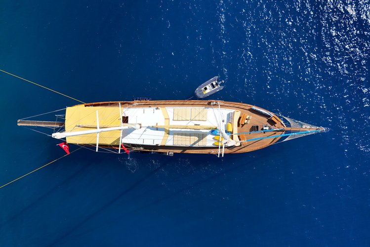 A 34-meter luxury gulet offering unforgettable yacht charter experiences along the Turkish Riviera. With 8 stylish cabins (1 Grand Master, 1 Master Double, 3 Doubles, 2 Twins, 1 Triple), she accommodates up to 17 guests—perfect for large groups.