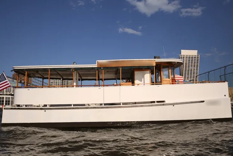 A white-hulled, fantail, plumb-bowed mini-yacht designed and constructed by Scarano Boat Building in Albany, NY. Hosting no more than 30 guests for special, intimate tours and excursions, she features wraparound lounge seating, a sound system for narration or music, a marine restroom, an open forward deck, and a fully equipped bar. She is ideal for inner harbor tours and can easily access the many nooks and crannies of Boston Harbor. The aft cabin is fully covered and features open windows, creating a porch-style feel while cruising in fair weather.