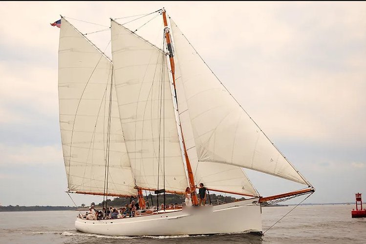 She is 65 feet on deck, 80 feet overall, and has a draft of 7 feet & masts reach over 70 feet above deck and has just under 2000 square feet of sail area.