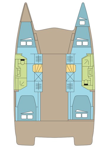 This boat has a maximum capacity of 11 people. For guests it features 4 cabins with an overnight sleeping capacity of 10 (2 of which are in the common area), 2 bathrooms and 2 showers. Additionally, for captains and crew it features 1 cabin with an overnight sleeping capacity of 1, 0 bathrooms, and 0 showers.