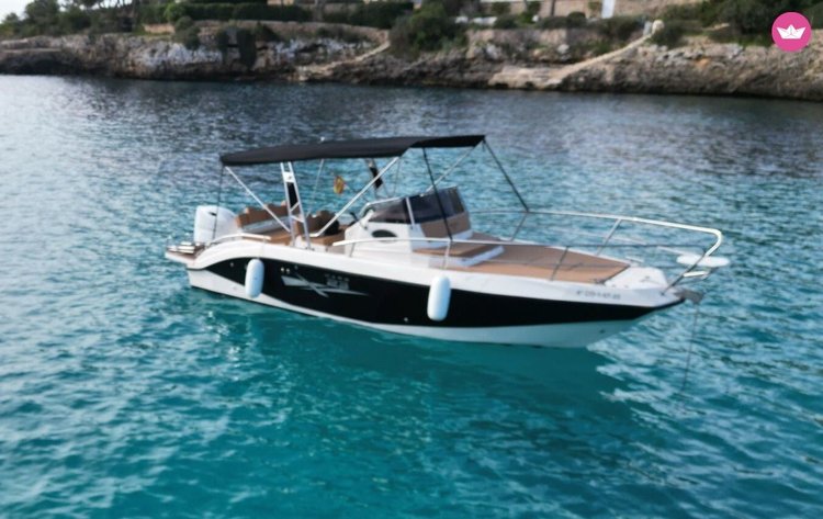 This 24-foot open motorboat is a great option for groups of up to 9 guests looking to explore the beautiful coastline of Cala d’Or. Powered by a 200HP engine, it offers smooth cruising with a top speed of approximately 20 knots.