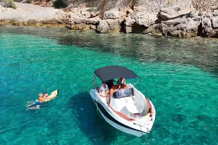 Enjoy a private boat charter along the beautiful coastline of Mallorca aboard a modern motorboat designed for small groups seeking a relaxed and personalized experience on the water.