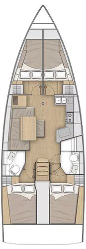 This boat has a maximum capacity of 10 people. It features 4 cabins with an overnight sleeping capacity of 10 (2 of which are in the common area), 2 bathrooms, and 0 showers.
