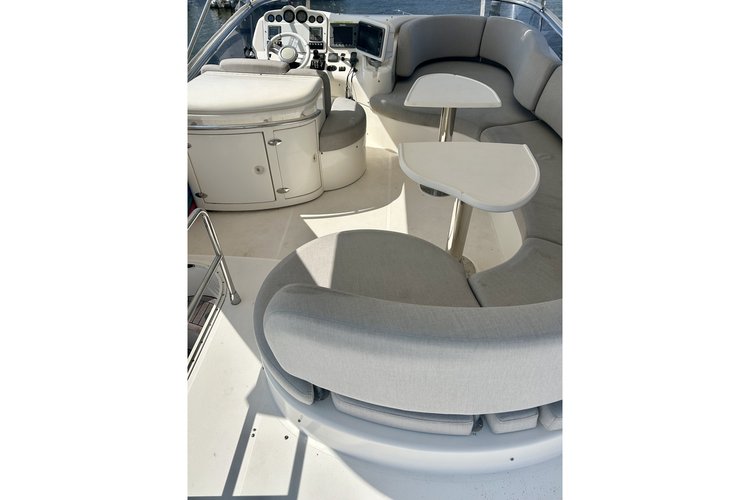 This yacht is perfect for guests who want luxury, space, and access to premier destinations in a short charter window, all while enjoying one of the most sought-after flybridge layouts in its class.