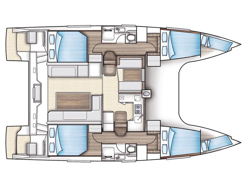 This charter has 4 cabins with 2 bathrooms. This boat has 17 additional services available. The required extras payable now are already included in the sailboat rental price. You can further customize your sailing adventure on this Sailo yacht charter by clicking the reservation button. On the next page you can select the optional services for your trip.