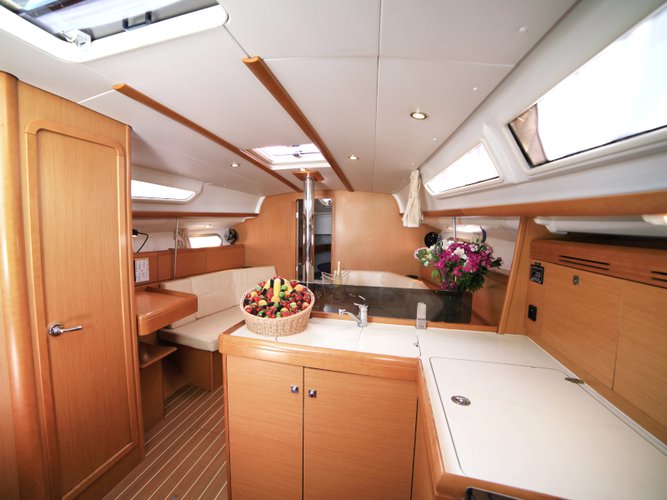 This is a 35.9 feet long sailboat rental that provides the guests with 3 cabins with 6 sleeps and 1 bathroom. There are 23 extra services available for you to customize your trip on this sailboat charter. The mandatory extras payable now are already included in the rental price. By clicking the reservation button, you will be able to choose from the optional extras to further customize your sailing vacation.