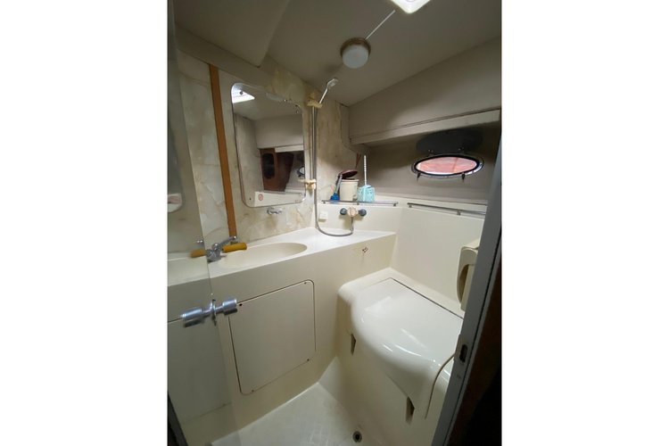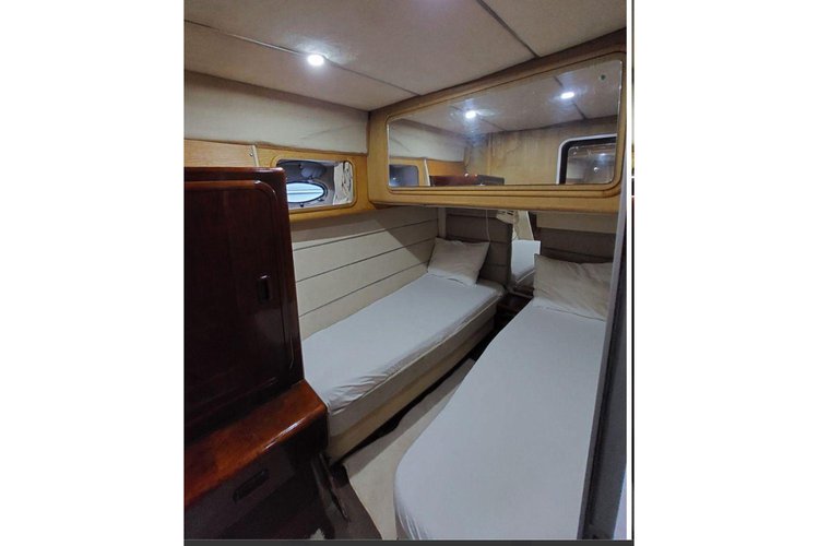 This boat has a maximum capacity of 4 people. It features 2 cabins with an overnight sleeping capacity of 0, 0 bathrooms, and 0 showers.