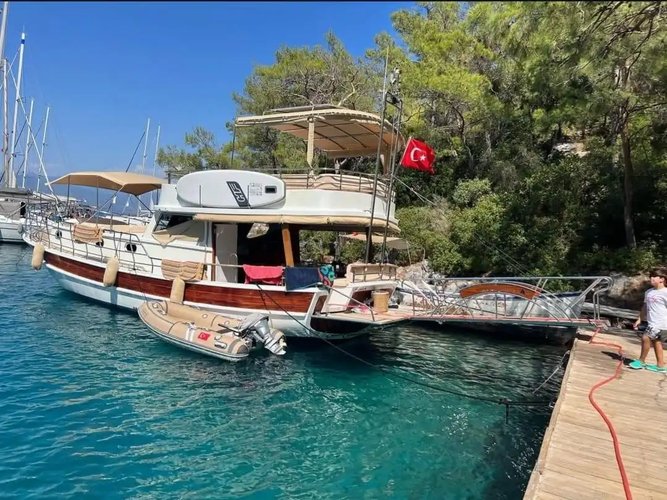 An ideal option for exploring the enchanting bays of Göcek and having an unforgettable sea holiday, this 17-meter gulet offers both an economical and comfortable experience. Departing from Muçev Marina, you will witness the most beautiful shades of blue and green with daily or overnight tours on Göcek's famous 12 Islands route. For those seeking boat rentals in Göcek, this gulet offers a budget-friendly alternative without compromising on comfort.