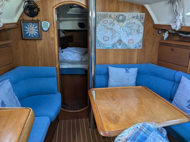 This is a 37.4 feet long sailboat rental that provides the guests with 3 cabins with 6 sleeps and 1 bathroom. There are 4 extra services available for you to customize your trip on this sailboat charter. The mandatory extras payable now are already included in the rental price. By clicking the reservation button, you will be able to choose from the optional extras to further customize your sailing vacation.