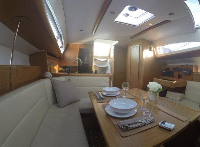 There are 3 cabins with 8 sleeps and 2 bathrooms available for your family or group of friends. You can customize your sailing trip by further choosing from 46 extra services available for this sail yacht charter. The displayed boat rental price already includes the mandatory extras payable now. Check and choose from the optional extras on the next page by clicking the reservation button.
