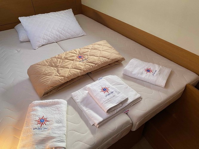 The guests on this sailboat will be sharing 4 cabins with 9 sleeps and 3 bathrooms. This boat has 21 additional services available. Required extras payable now are already included in the boat rental price. Click the reservation button to check the optional extras that allow you to customize your sailing trip.