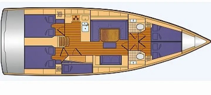 This is a 45.9 feet long sailboat rental that provides the guests with 5 cabins with 10 sleeps and 2 bathrooms. There are 42 extra services available for you to customize your trip on this sailboat charter. The mandatory extras payable now are already included in the rental price. By clicking the reservation button, you will be able to choose from the optional extras to further customize your sailing vacation.
