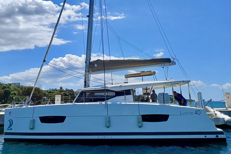 Your sailing holiday in Croatia is guaranteed to be amazing on board of this Kvarner sailboat rental - a beautiful Fountaine Pajot Lucia 40 - 4 cab. from 2017. Choose this cozy and beautiful Catamaran charter that accommodates up to 10 guests for a relaxed, comfortable sail to enjoy with your group of friends or your family.