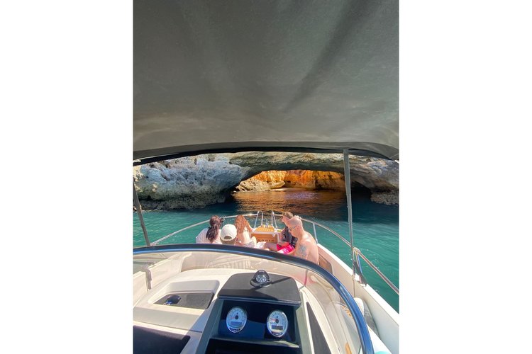 Discover the spectacular Algarve coastline aboard Snow White, a sleek and stylish sports cruiser perfect for exploring caves, swimming in crystal-clear waters, and relaxing in the sunshine.
