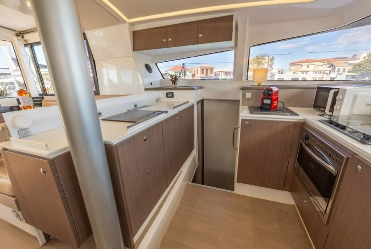 This beautiful 40.6’ sailboat rental is one of the most popular among our captains in Lefkada, Greece! This roomy 2020 Bali Catamarans yacht charter can easily accommodate a maximum of 12 guests for a comfortable week-long trip.