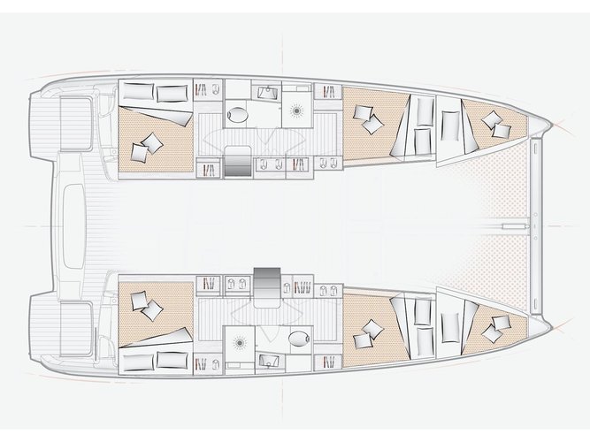 The guests on this sailboat will be sharing 6 cabins with 10 sleeps and 2 bathrooms.