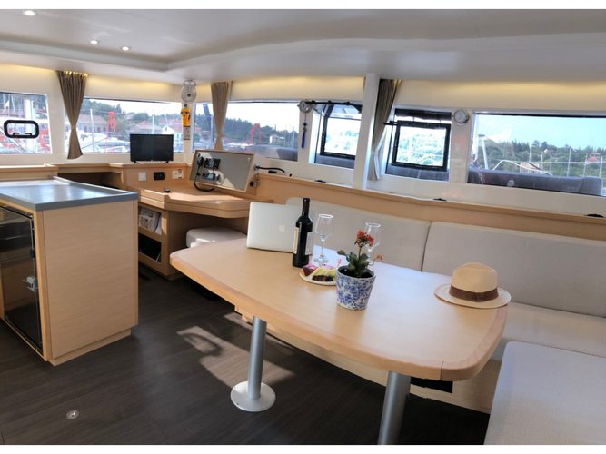 Your sailing holiday in Greece is guaranteed to be amazing on board of this Lefkada sailboat rental - a beautiful Lagoon 450 Fly from 2019. Choose this cozy and beautiful Catamaran charter that accommodates up to 10 guests for a relaxed, comfortable sail to enjoy with your group of friends or your family.