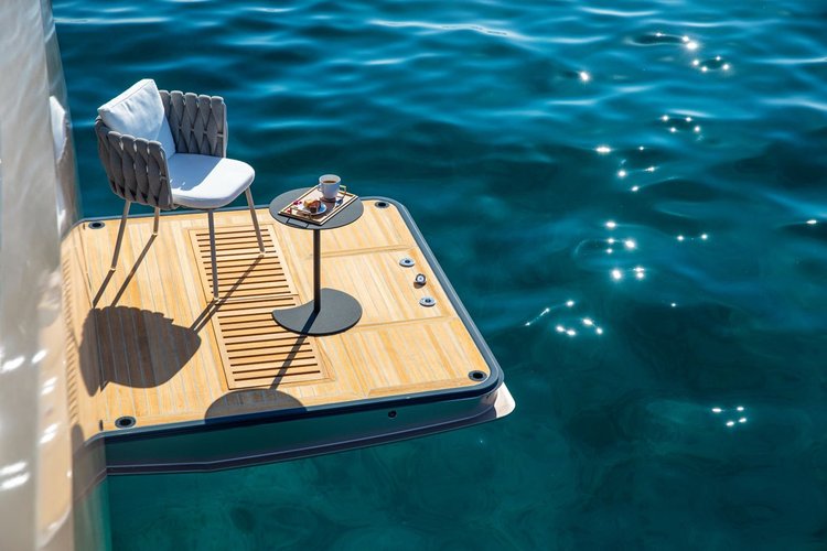 It means ‘satisfied’ in old Irish answers every need a guest might have. Providing spacious and convivial living areas, enabling free circulation between interior and exterior while also integrating luxurious cabins optimizing comfort and fun at every design aspect. Her champagne-coloured hull during sundawn, makes SEVENTY 8 an unrivalled jewel nicely blending in with the natural environment.