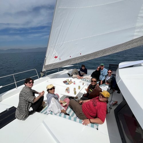 This boat has a maximum capacity of 12 people. It features 3 cabins with an overnight sleeping capacity of 6, 3 bathrooms, and 3 showers.