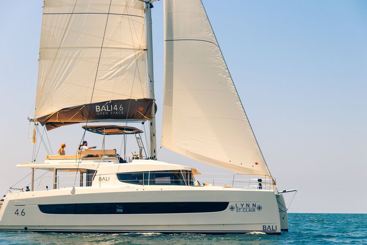 Allow us to introduce you to the Lynn St. Clair. This Bali 4.6 is a sleek and luxurious catamaran that offers both comfort and a spacious, stylish design. Whether you are lounging in the open-air cockpit or taking in the incredible views from the expansive saloon, you and your guests will quickly feel right at home on this elegant catamaran.