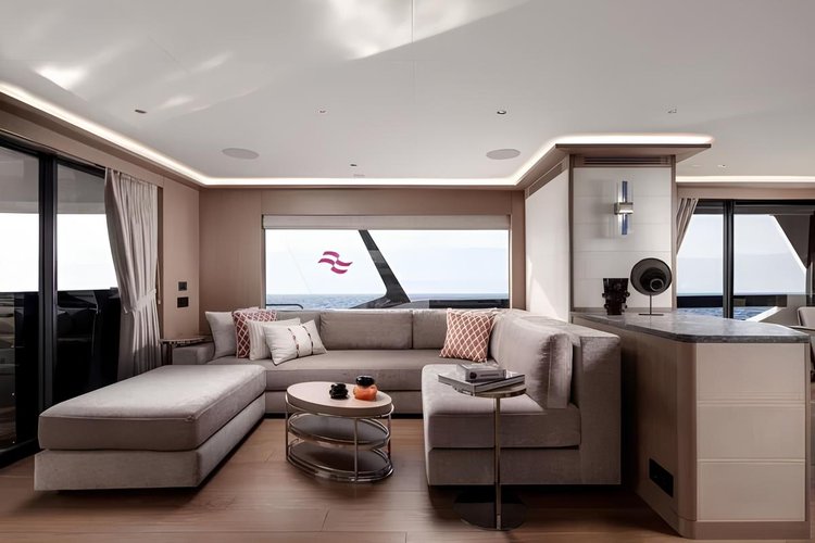 The yacht comfortably accommodates up to 12 guests in 5 luxurious staterooms, including a stunning main deck master suite, two VIP cabins, and two twin guest cabins, all featuring private en-suite bathrooms for maximum comfort and privacy.
