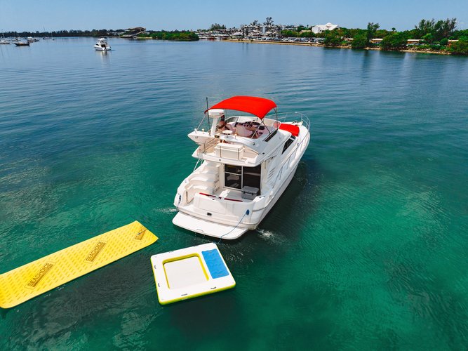 Welcome aboard our lovely 45’ Sea Ray Fly Bridge! Come join us as we cruise through our beautiful Miami waters. Whether you're looking for a relaxing cruise on the bay with breath taking views or to let loose and party it up by one of our islands, we are here to make your trip one to remember!