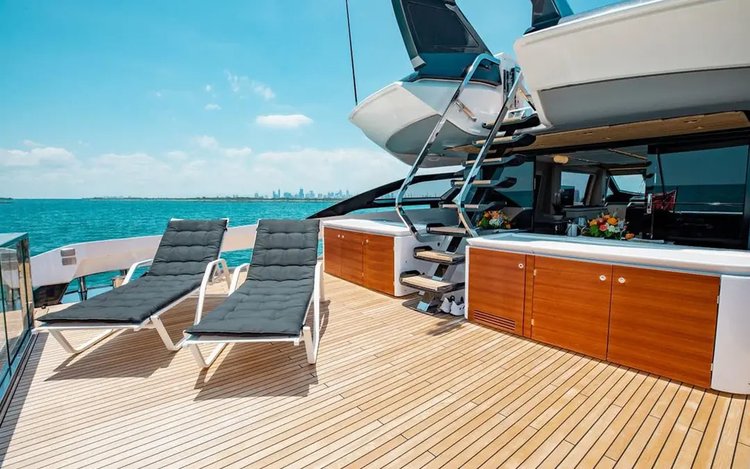 This yacht is known for its spacious layout, modern design, and luxurious finishes, offering both indoor elegance and expansive outdoor areas for socializing.