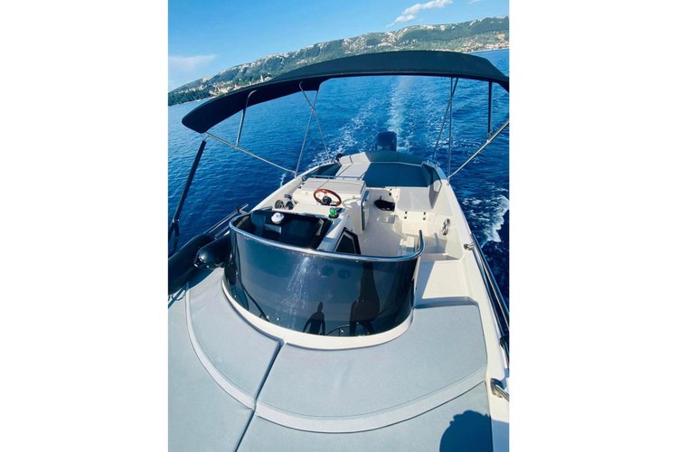 Barca Dylet 85 target 2022. Uno studio instancabile e l’infinita passione per il mare, hanno fatto sì che venisse realizzato dal cantiere Trimarchi la Dylet 85 con una lunghezza fuori tutto di 9.5 mt. Adatta a qualsiasi navigazione e in package motorizzato con Mercury 400HP raggiunge massimi risultati in termini di performance (in esclusiva con skipper). Il tutto rifinito nei minimi dettagli, spazi compatti ma con all’interno tutto ciò di cui hai bisogno: ampio prendisole di prua e comodo divano di poppa trasformabile in un prendisole o zona pranzo con tavolo a scomparsa, fornello a gas, lavabo, WC elettrico, cabina con quattro posti letto, frigo, salpa ancora, rollbar con tendalino, GPS 9 pollici, VHF, stereo Bluetooth, Tv 24 pollici, doppia presa USB ricaricabile, impianto doccia con acqua dolce e scaletta di risalita . La Dylet 85 è un connubio tra guida veloce e comfort ai massimi livelli per un pubblico amante delle imbarcazioni sportive e di lusso. ESCLUSIVAMENTE CON SKIPPER