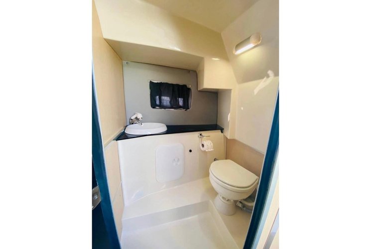 This boat has a maximum capacity of 10 people. It features 1 cabins with an overnight sleeping capacity of 2, 1 bathroom, and 1 shower.
