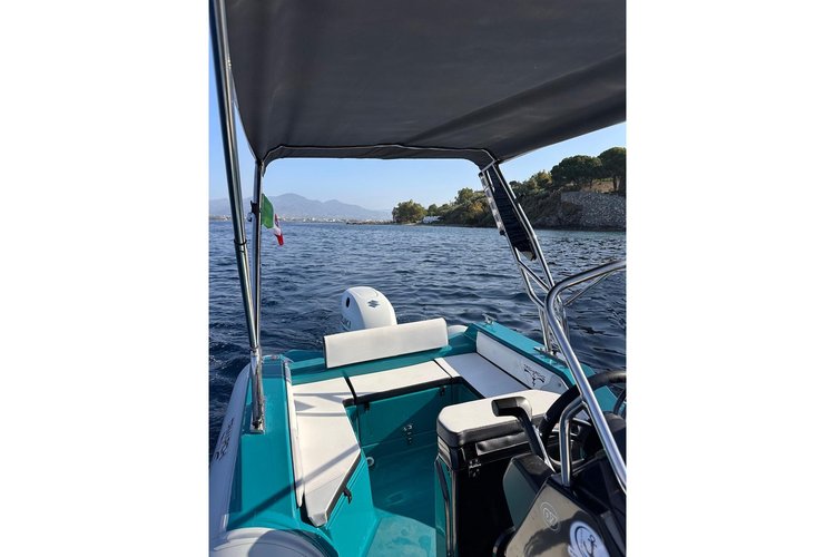Lunghezza 6.3 mt motorizzato con Suzuki 115hp si presenta con ottime prestazioni e consumi davvero ridotti, omologato per 6 persone comodo e spazioso grazie al prendisole a prua e layout dinette a poppa, super accessoriato con bussola, stereo Bluetooth, presa usb ricaricabile, GPS e cartografico, rollbar con tendalino, impianto doccia con acqua dolce, ghiacciaia igloo, plance di poppa, luci di cortesia interne, luci di profondità esterne e scaletta di risalita. Il mezzo ideale per una piacevole e rilassante navigazione alla scoperta delle meravigliose Isole Eolie.