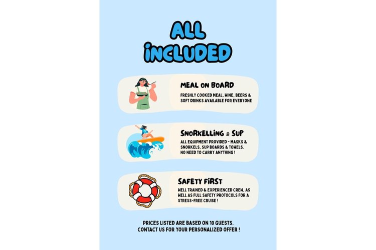 ***Destination is always depending on the weather/wind conditions and can be arranged aboard with the captain.