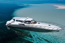 A 52 ft Fountain express cruiser - sleek lines, aggressive stance, and a glossy gelcoat finish — delivers blistering offshore performance alongside a refined cockpit and a well-appointed cabin. This boat presents as a head-turner at the marina and a confident performer on open water.