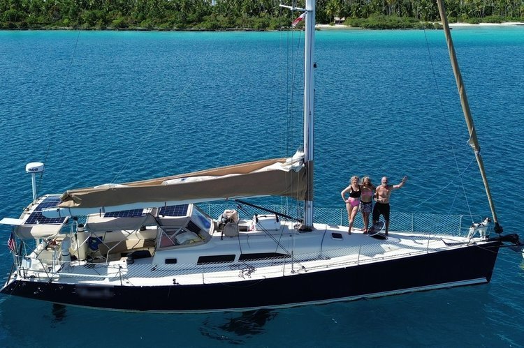 Our Sailboat has a comfortable, large cockpit and plenty of seating, with dual steering wheels. The Bimini and dodger protect you from the sun and wind, or sit on the bow to enjoy the elements and wide-open views. The water-level swim step makes it easy to take a quick swim and hot shower, whether at anchor by the beach or out at sea!