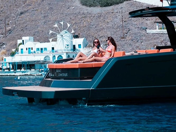 From the moment you arrive, you are welcomed into a refined setting featuring sleek lines, premium materials, and thoughtfully designed spaces. Cruise effortlessly across the Aegean, discovering hidden coves, volcanic landscapes, and picturesque coastal views that define the beauty of Santorini.