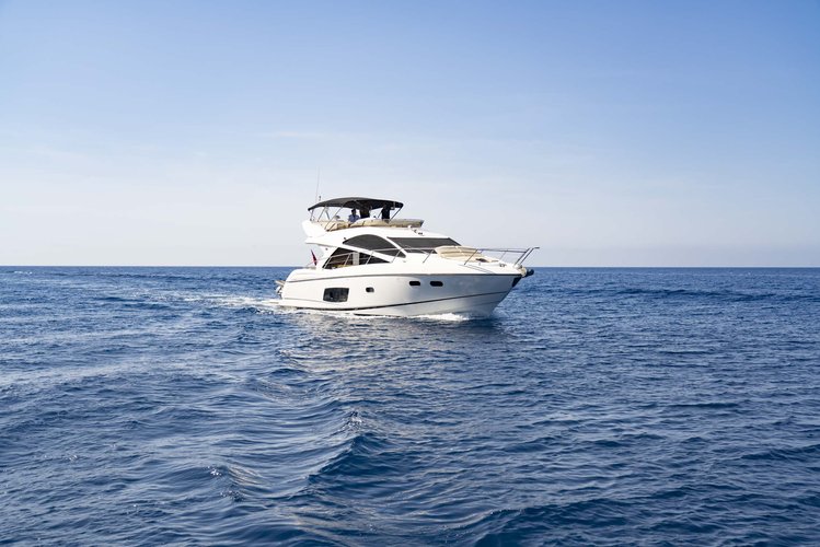 Enjoy a private luxury yacht charter in Mallorca aboard this elegant Sunseeker Manhattan 53 motor yacht, ideal for groups of up to 10 guests. This stylish yacht offers spacious sunbathing areas, comfortable shaded lounges, and a refined interior designed for relaxation, socializing, and smooth Mediterranean cruising.