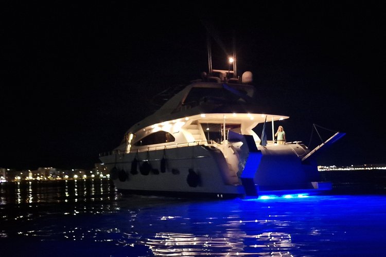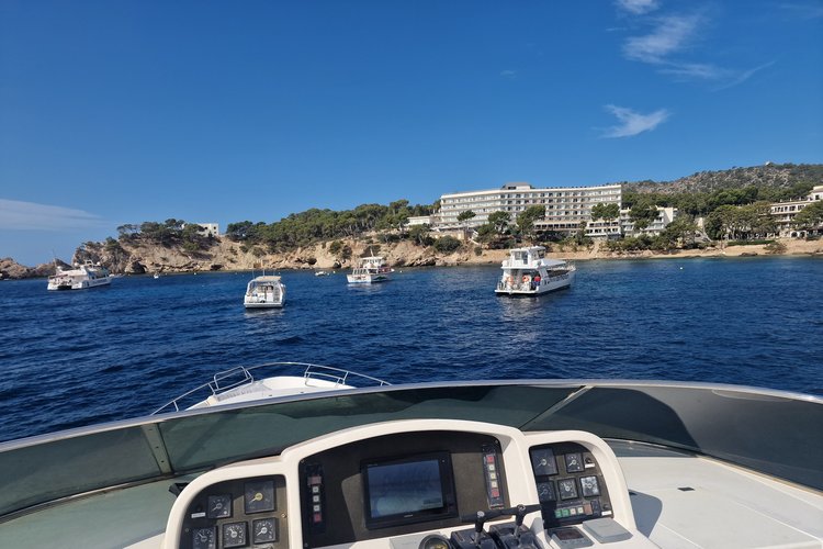 Outside on the fly bridge, this beautiful yacht has a Jacuzzi and an electric barbecue. It has a jet tender for those all-important visits to the beach and includes water skis, wakeboards, doughnuts, donuts and snorkelling equipment. On the front deck, you will find a full-width sunbathing area with custom-made cushions, where you can relax in style and comfort. On the rear deck, you will find an 8-seat dining table, the place to see and be seen (under cover), together withan additional sunbathing area with access to the bathing platform and dive ladder. From this point, you can board the jet tender and visit the beaches, coves and restaurants or simply enjoy a myriad of water sports. There is also a fully equipped kitchen and utility/laundry room on board where the crew can take care of any domestic requirements that you may have.